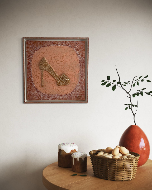 Acryl auf Keilrahmen, Strukturpaste, Perlen, mit Rahmen, Bildgröße ohne Rahmen 40x40 cm